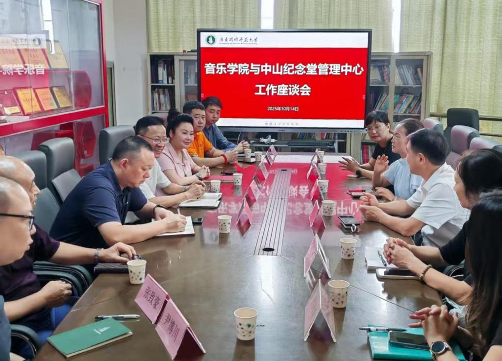 10月14日,广州市中山纪念堂管理中心党支部书记张燕鹏带队来音乐学院调研交流。音乐学院党委书记黄锡炳、院长刘春红、副院长邓昆及系部负责人、教师代表出席交流活动。