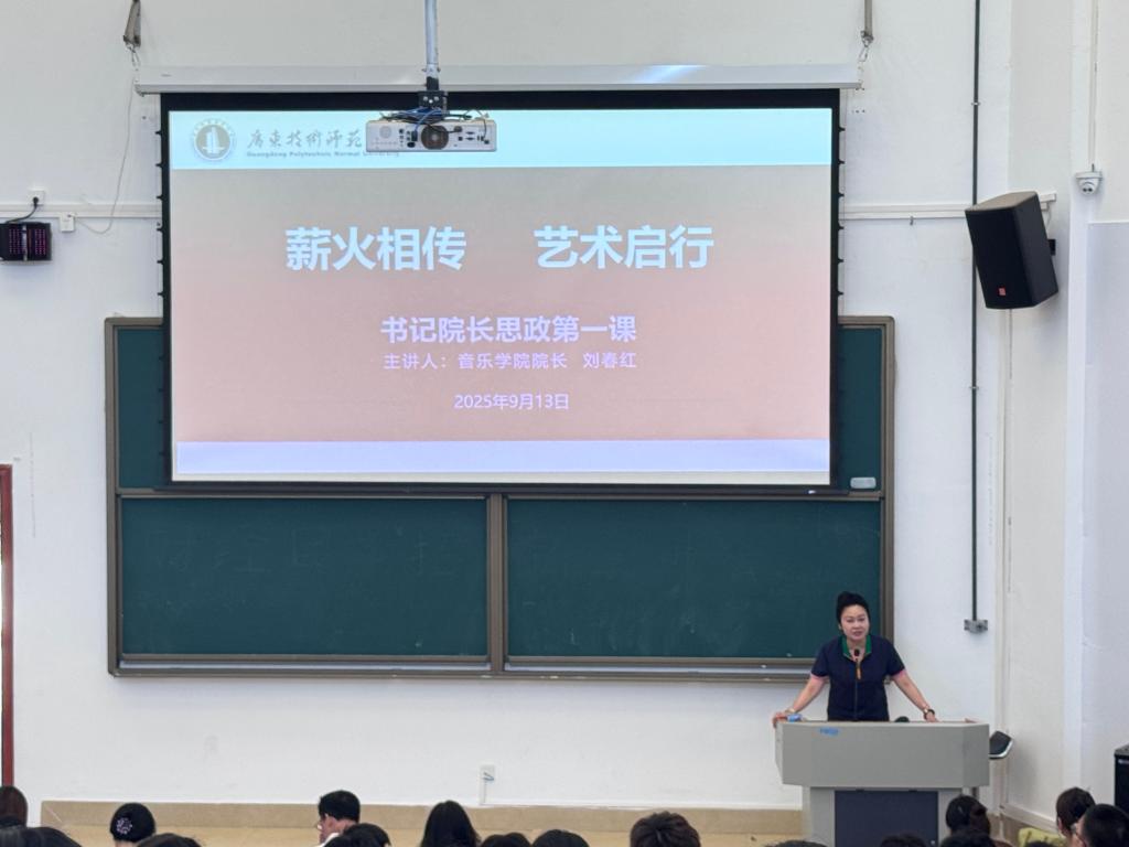 9月13日上午,广东技术师范大学音乐学院2025级本科新生入学教育大会在河源校区举行。学院党委书记黄锡炳、院长刘春红分别为新生讲授“思政第一课”,音乐系、舞蹈系负责人、新生班主任及全体2025级本科新生共同参与。