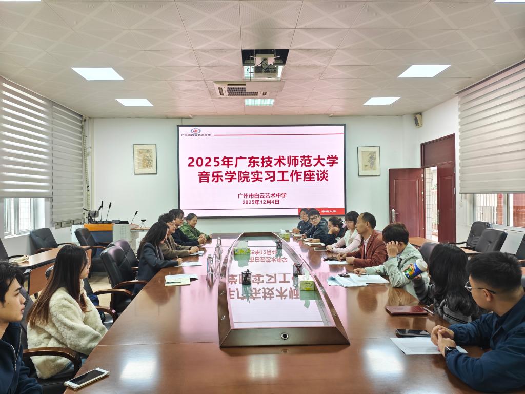 为深化校企协同育人,精准对接美育人才需求,2025年12月4日,音乐学院党委副书记赵璐带领专任教师、就业辅导员一行,赴广州市白云艺术中学开展实习工作座谈暨访企拓岗促就业专项行动。白云艺术中学副校长李志汉、教导主任李晓宇、实习指导教师代表及优秀校友代表参与座谈。