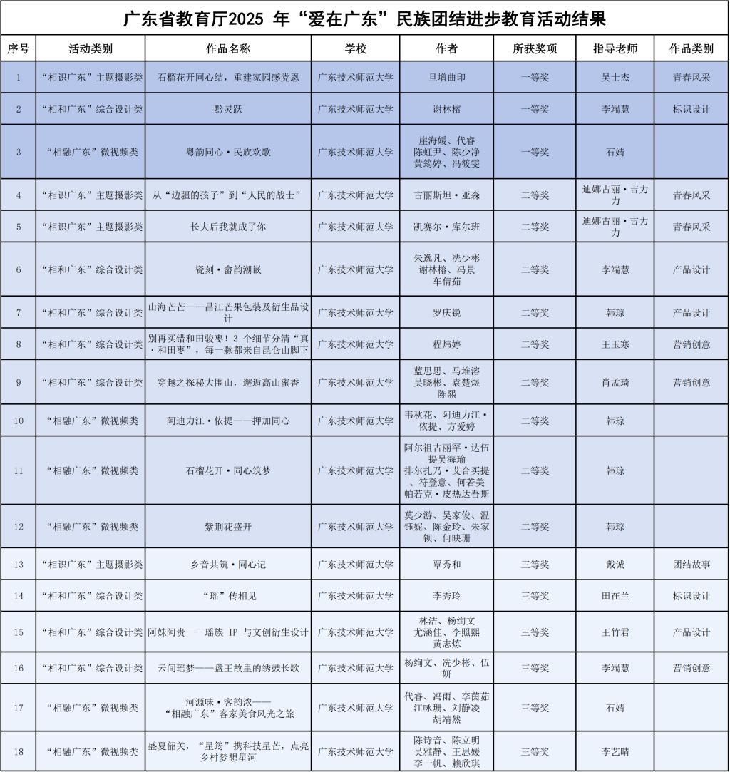 近日,广东省教育厅公布2025年“爱在广东”学校民族团结进步教育活动评选结果,我校成绩斐然,音乐学院师生积极参与、精心筹备,充分展现了学院美育育人与民族团结进步教育融合的丰硕成果。