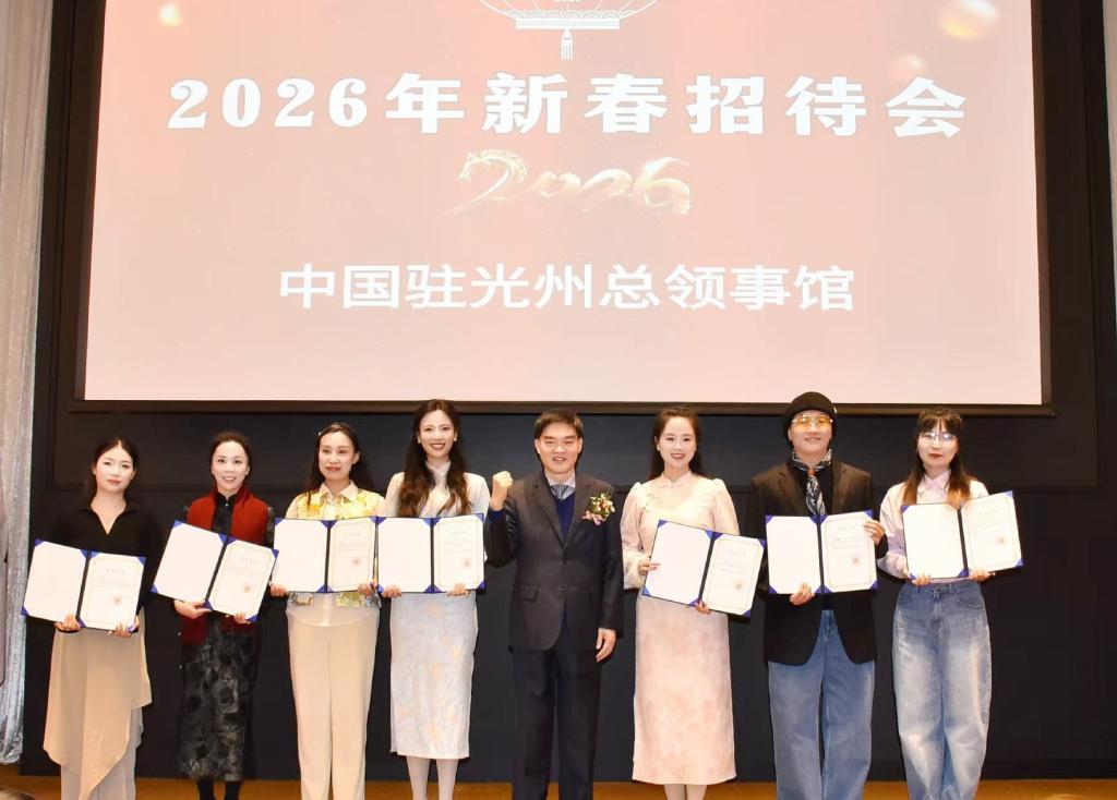 为迎接2026年马年新春佳节,传递中华文化温暖,1月30日,中国驻韩国光州总领事馆举办“温暖迎春·共庆中国年”新春招待会。领区政府代表、友好人士、华侨华人团体、中资机构、孔子学院及留学生代表等齐聚一堂,共迎新春、共叙情谊。