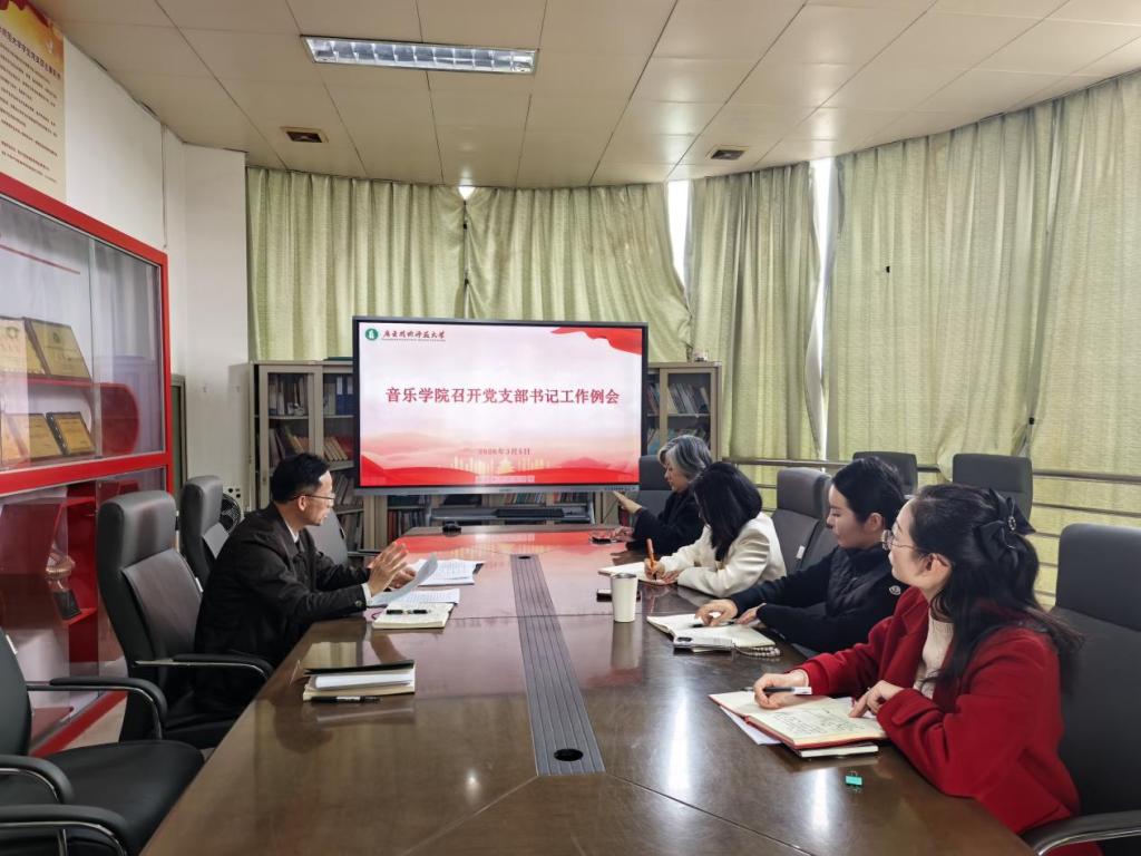 为深入落实学校党建工作部署,扎实推进党建调研反馈问题整改,提升基层党建工作质量,2026年3月5日,音乐学院召开党支部书记工作例会。学院党委书记黄锡炳主持会议并讲话,全体党支部书记参加会议。